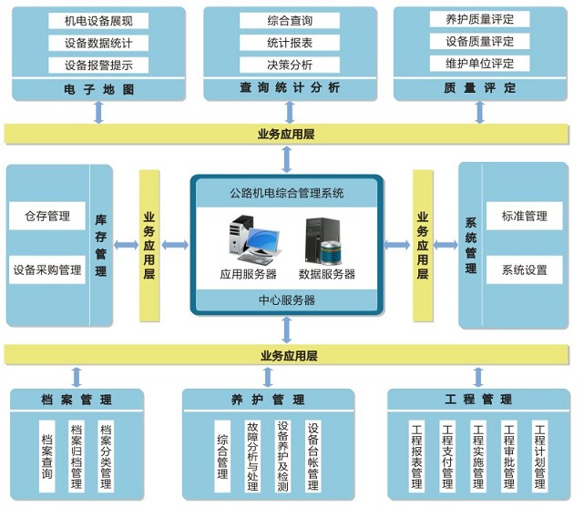 公路机电综合管理系统是集中式的信息数据库,将企业的机电设备、备品备件、查询维护任务和维修任务等经营业务有机的结合起来,达到数据共享,及时获得资产与成本状况、加快资金周转与优化资金分配、降低储备资金占用、数据智能分析和高效决策。