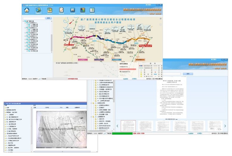 按照公路工程建设项目从立项、设计、施工、竣工的各环节,进行全过程的图档资料管理,实现分类国标化、采集自动化、查询直观化、资料多样化,管理涵盖业主单位、施工单位、监理单位,利用网络实现多级、多层次管理。